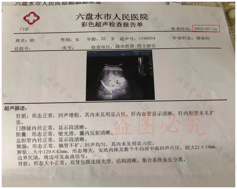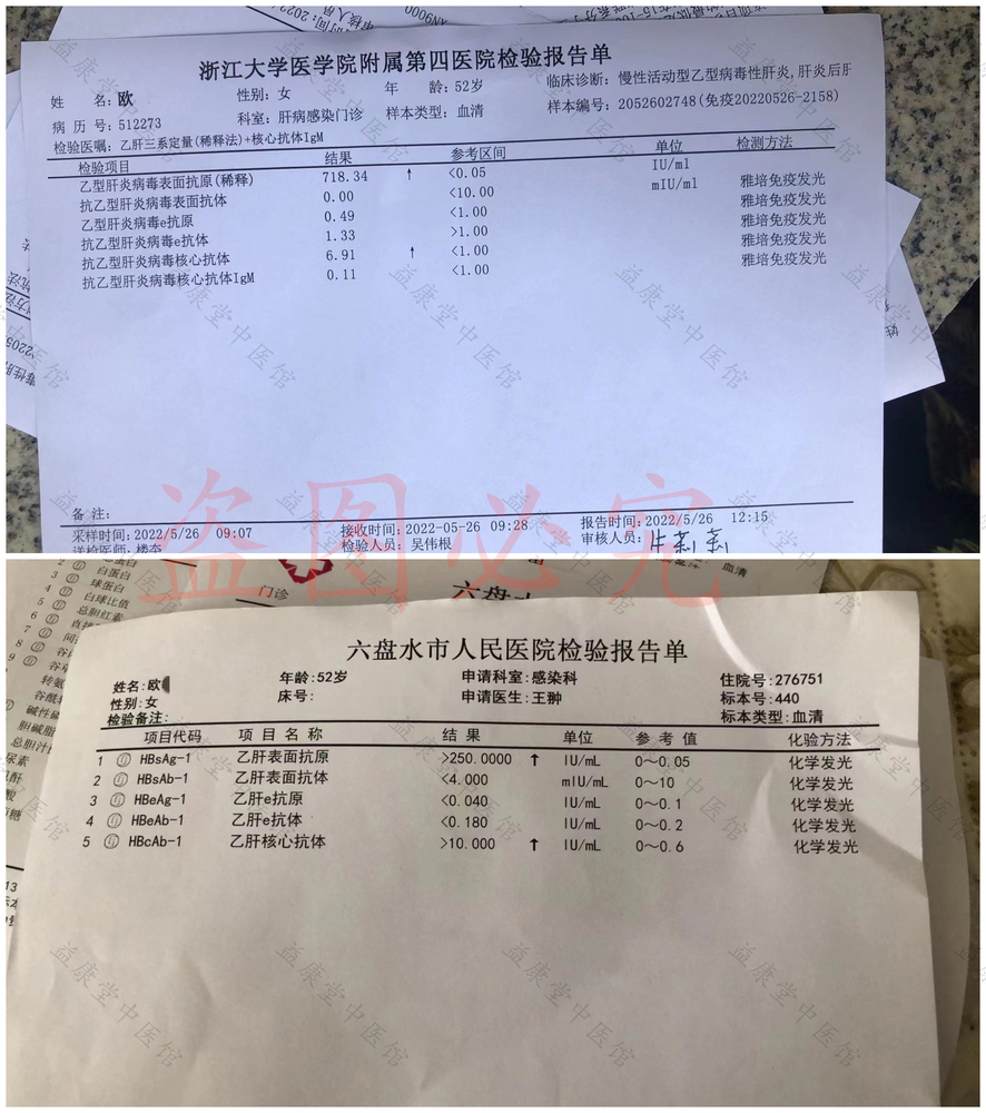 求医无果,患者于2022年5月27日通过学习我馆公众号远程求医,根据患者目前状况,经我馆医药人员充分研究,拟定治疗方案,使用我馆中草药秘方,检查结果对比如下: