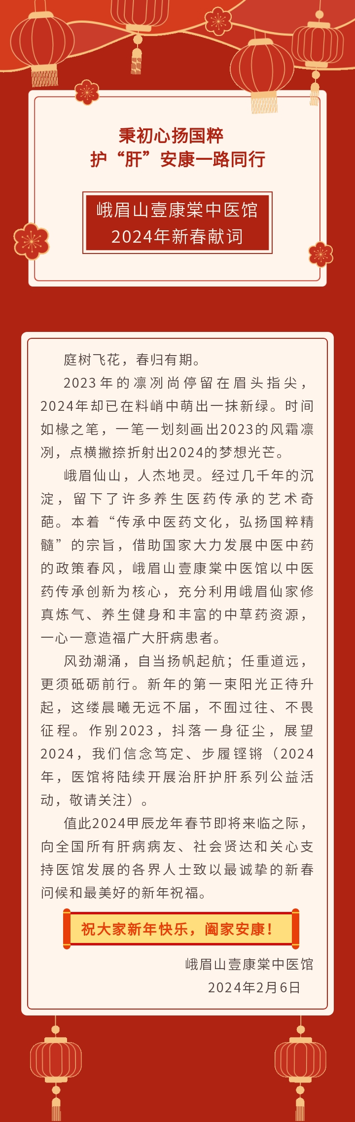 秉初心扬国粹 护“肝”安康一路同行 | 峨眉山壹康棠中医馆2024年新春献词